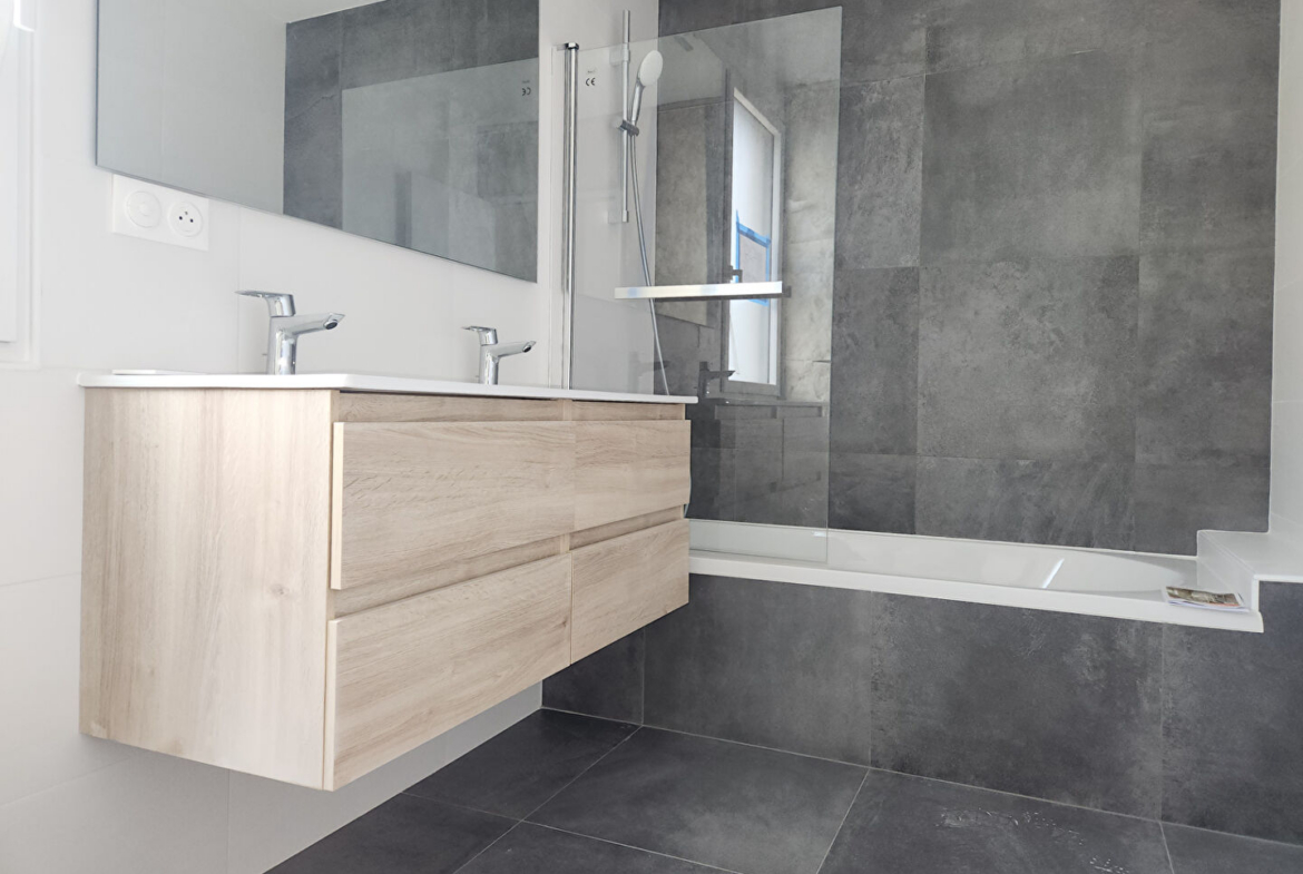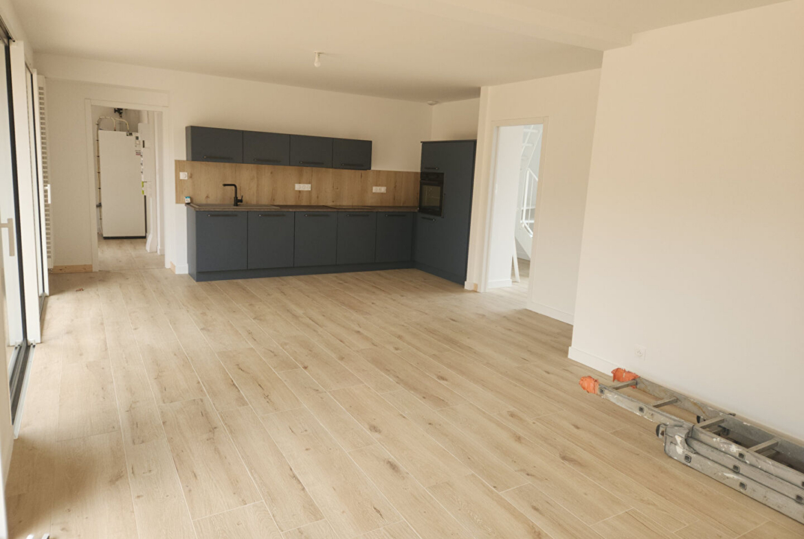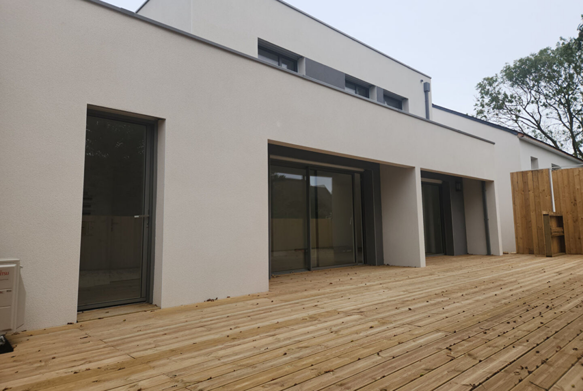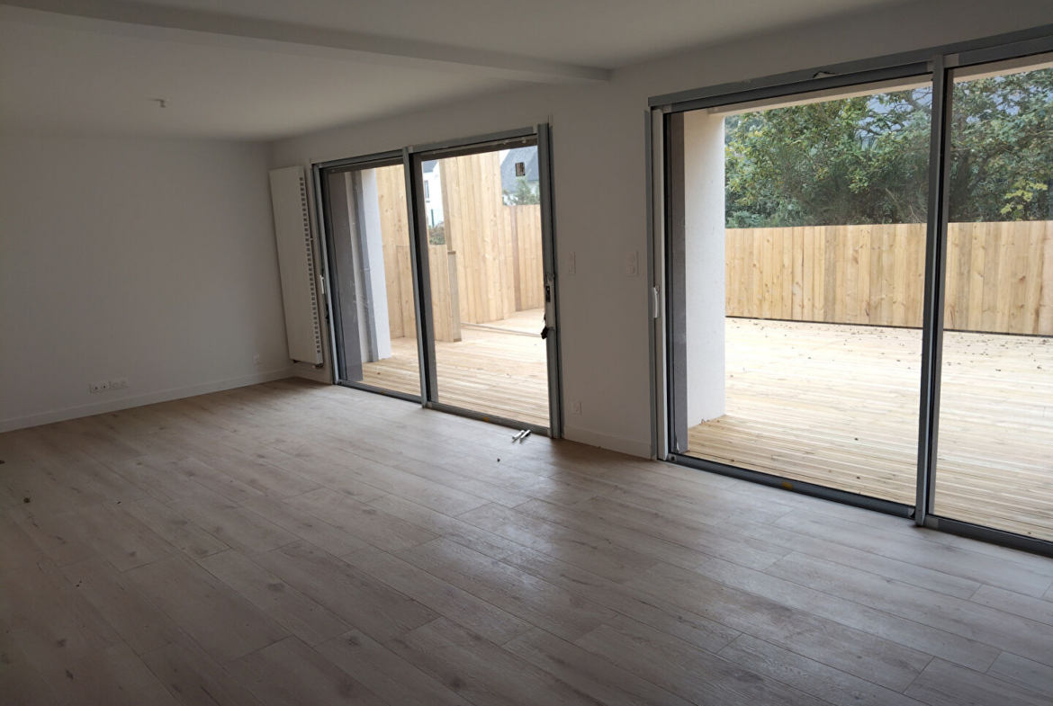 Découvrez cette maison neuve spacieuse et fonctionnelle de 115 m2 habitables édifiée sur un terrain de 356 m2. Elle offre de beaux volumes et des prestations confortables. Elle vous propose au rez-de- chaussée un vaste séjour avec cuisine aménagée équipée, un cellier, une chambre avec salle d’eau privative, à l’étage 3 chambres et une salle de bains avec baignoire. A l’extérieur, profitez d’une superbe terrasse en bois. Le terrain demande très peu d’entretien grâce à sa failble surface de pelouse. Un bien moderne et pratique, idéal pour une vie de famille. DPE en cours. Loyer 1200 € – Honoraires de location 960 € – Réf FB-2832 Contacter le service location au 06.25.48.24.30 www.cabinet-kerjean.fr